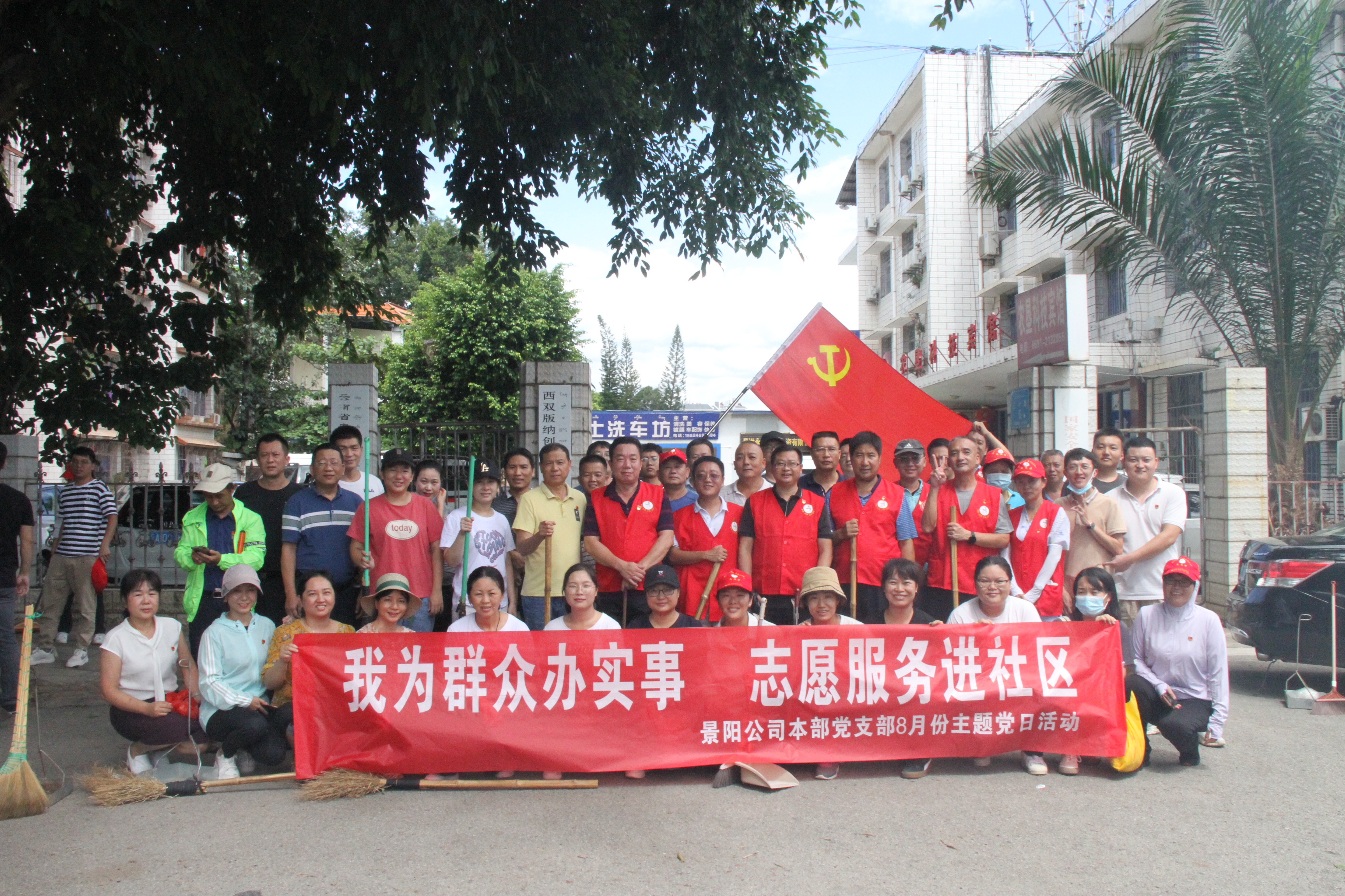 8月23日,景阳公司本部党支部组织全体党员干部、入党积极分子共计52人到三叶社区开展“我为群众办实事志愿服务进社区”主题党日活动。党员干部发挥模范带头作用,积极投入劳动,清除社区道路两旁的杂草和垃圾,部分党员持《景洪市创建国家卫生城市群众满意度知识问卷》资料进行入户发放填写,向居民讲解爱护环境的重要性。活动中党员干部职工充分发扬不怕苦、不怕累、不怕脏的精神,相互配合,分工协作,在社区内营造了“清洁...