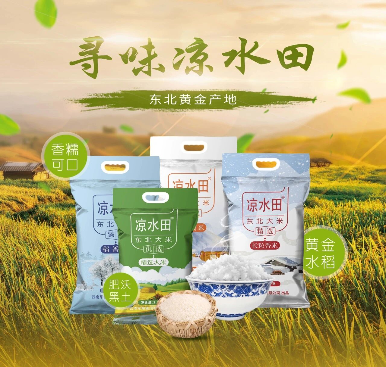 “凉水田”,云南军粮集团旗下大米品牌,甄选我国南北地区不同黑土地上的优质大米。有地处“黄金水稻生长带”核心区域,产自北国吉林黑土地的“香小町米”、寒地黑龙江黑土带的“长粒香米”及生态产区“精选大米”,有源自云南稀有高原黑土地“高原软香米”。寻味“凉水田”,黑土地营养富集,孕育出的稻谷颗粒饱满、口感醇厚,从源头保障了产品品质,践行绿色发展理念。